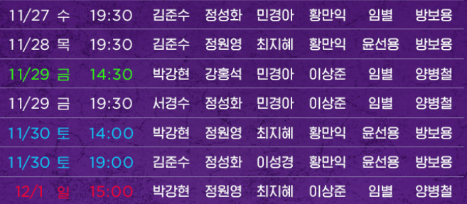 24๋ 11์22์ผ(๊ธ) ~ 24๋ 12์8์ผ(์ผ)๊น์ง์ ๊ณต์ฐ ์ค์ผ์ค์ ๋๋ค.