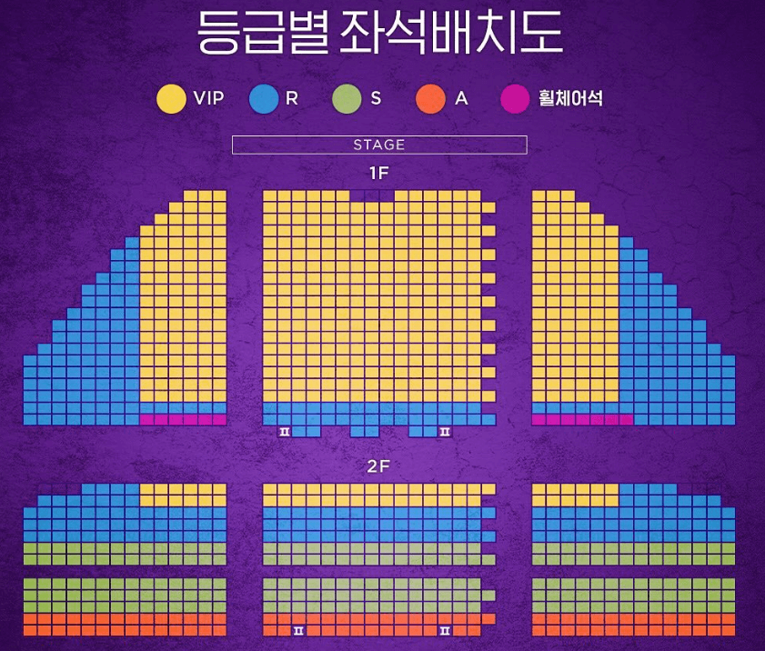 ์ขŒ์„ ์ข…๋ฅ˜์™€ ๊ฐ€๊ฒฉ์€ VIP์„ 190,000์›, R์„ 160,000์›, S์„ 130,000์›, A์„ 90,000์›์œผ๋กœ ๊ตฌ์„ฑ๋˜์–ด ์žˆ์Šต๋‹ˆ๋‹ค.