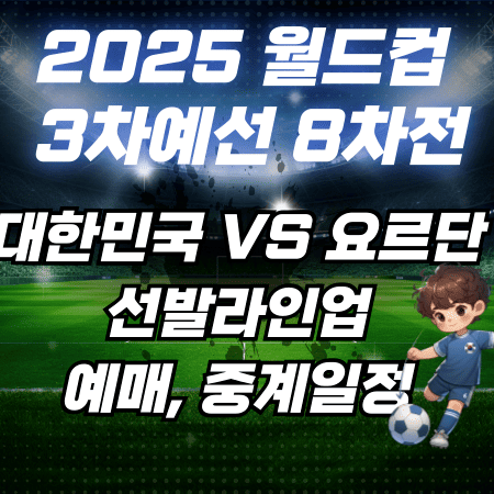 3์›” ์ถ•๊ตฌ ์›”๋“œ์ปต 3์ฐจ์˜ˆ์„  8์ฐจ์ „ : ๋Œ€ํ•œ๋ฏผ๊ตญVS์š”๋ฅด๋‹จ ์ถ•๊ตฌ ๊ฒฝ๊ธฐ ๋ฐ ์˜ˆ๋งค ์ •๋ณด(+์„ ๋ฐœ๋ผ์ธ์—…)