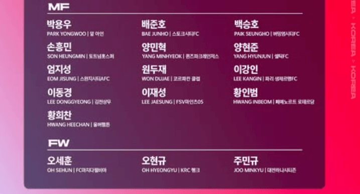 ๋Œ€ํ•œ๋ฏผ๊ตญ, ์š”๋ฅด๋‹จ ์„ ๋ฐœ ๋ผ์ธ์—… ๋ช…๋‹จ์ž…๋‹ˆ๋‹ค. (๐Ÿ‘‰๋ผ์ธ์—…์€ 3.10 ์˜ค์ „11์‹œ ๋ฐœํ‘œ๋˜์—ˆ์Šต๋‹ˆ๋‹ค.)